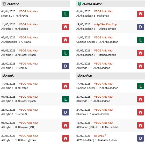 - Al Fayha thắng 1, hòa 1, thua 8 trong 10 trận gặp Al Ahli gần đây.