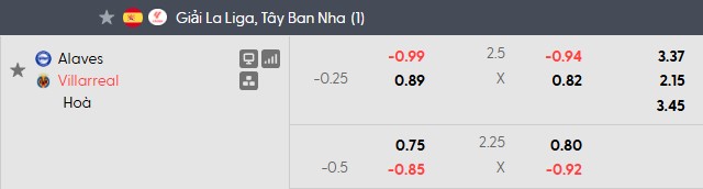 Thông tin tỷ lệ kèo bóng đá Alaves vs Villarreal: