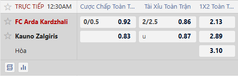 Thông tin tỷ lệ kèo Arda Kardzhali vs Kauno Zalgiris:
