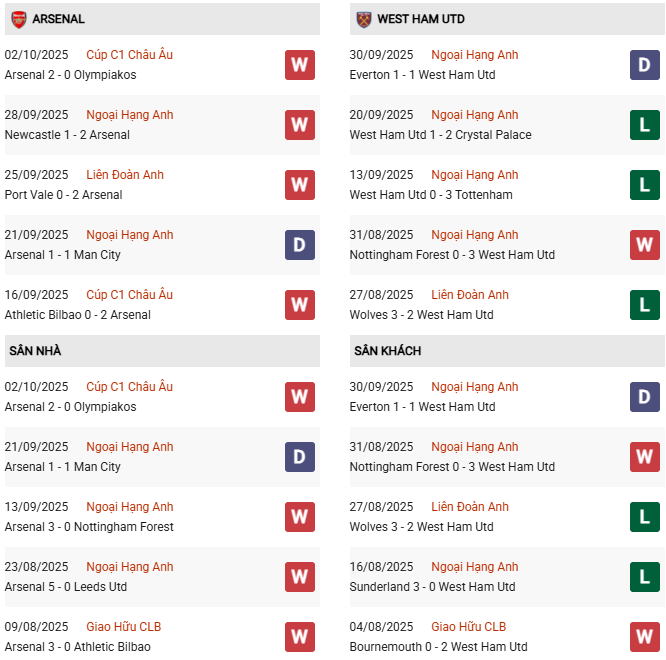 - Trên sân nhà, Arsenal thắng 8, thua 2 trước West Ham.