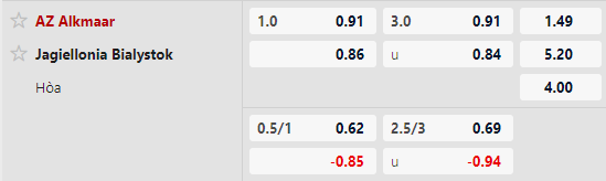 Thông tin tỷ lệ kèo AZ Alkmaar vs Jagiellonia: