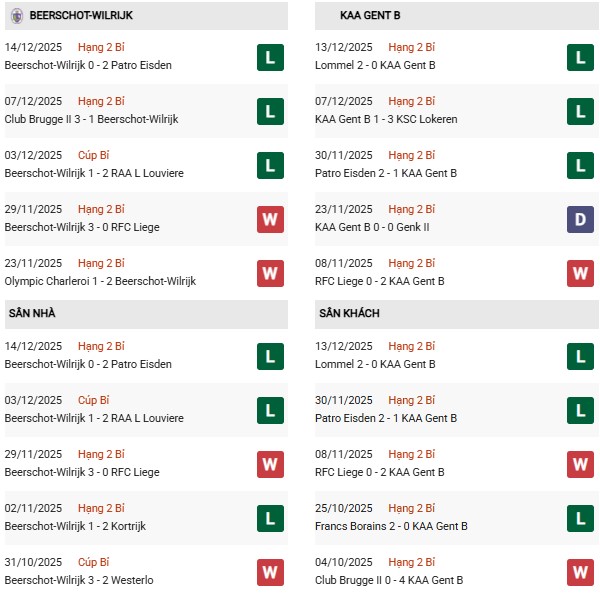Nhận định Beerschot vs Gent B, 02h00 ngày 17/12, vòng 18 Hạng 2 Bỉ, sân Olympisch. Beerschot sở hữu lực lượng nhỉnh hơn, lối chơi ổn định hơn và đặc biệt là động lực giành chiến thắng rất rõ ràng để tiếp tục bám đuổi nhóm dẫn đầu.