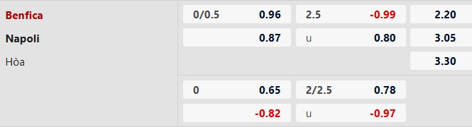 Thông tin tỷ lệ kèo Benfica vs Napoli: