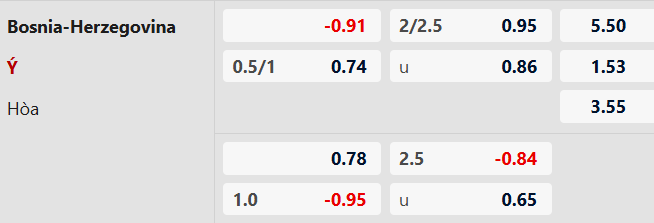 Thông tin tỷ lệ kèo bóng đá Bosnia vs Italia: