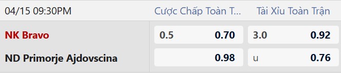 Thông tin tỷ lệ kèo Bravo vs Primorje: