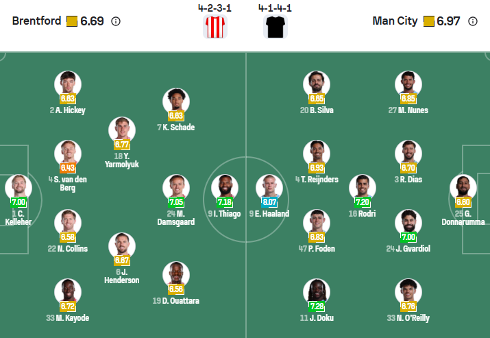 Đội hình dự kiến Brentford vs Man City: