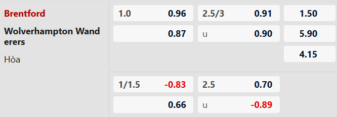 Thông tin tỷ lệ kèo bóng đá Brentford vs Wolves: