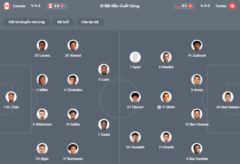 Thông tin lực lượng Canada vs Tunisia:
