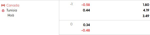 Thông tin tỷ lệ bóng đá Canada vs Tunisia: