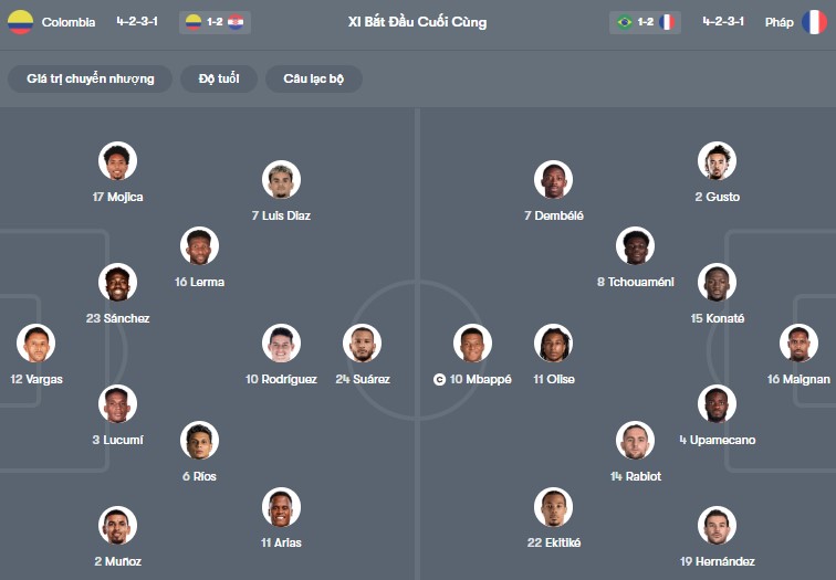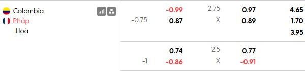 Thông tin tỷ lệ kèo bóng đá Colombia vs Pháp:
