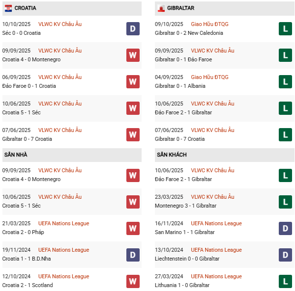 - Croatia toàn thắng cả 2 trận đối đầu Gibraltar gần đây.