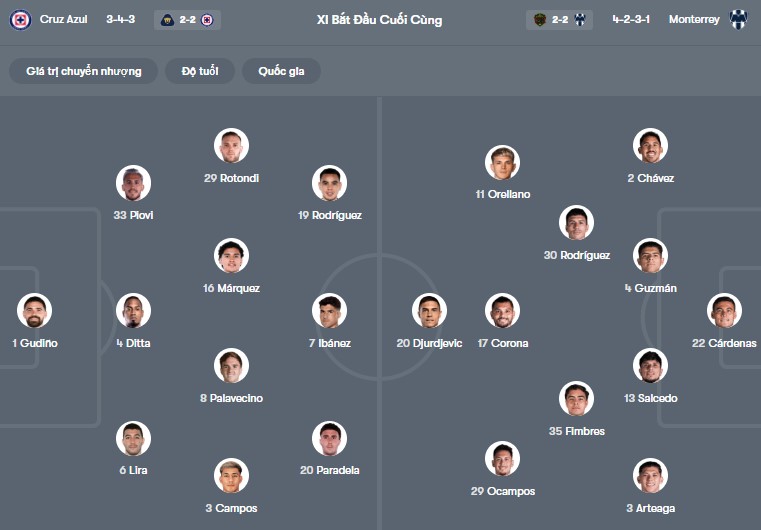 Đội hình dự kiến Cruz Azul vs Monterrey: