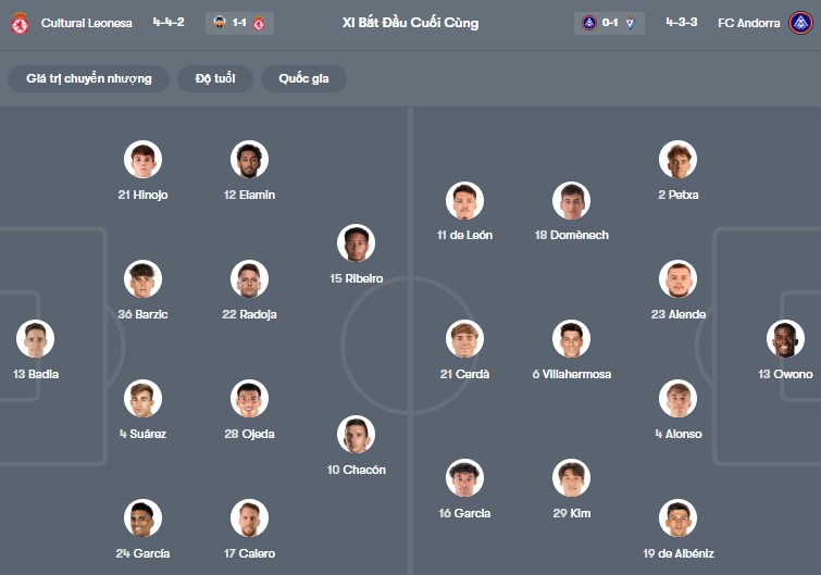 Thông tin lực lượng Cultural Leonesa vs Andorra: