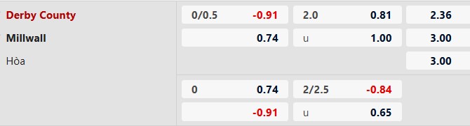 Từ năm 2019 tới giờ, Derby County chỉ thua và ... thua khi đón tiếp Millwall tại sân chơi Hạng Nhất Anh (tổng 5 trận). Như vậy kể cả việc Derby vẫn được đánh giá cao hơn trận này với kèo chấp 1/4 bàn là điểm tích cực, thì rõ ràng không có nhiều cơ sở để đặt niềm tin vào kịch bản chủ nhà chiến thắng.