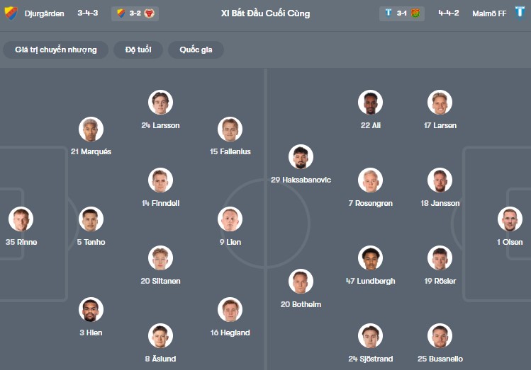 - Trên sân nhà, Djurgardens thắng 5, thua 3 trước Malmo.
