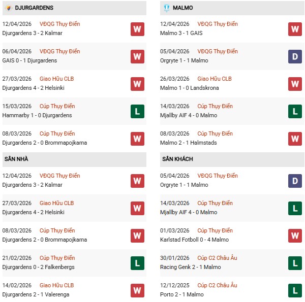 Năm ngoái dù sa sút là thế, Malmo vẫn ca khúc khải hoàn khi làm khách của Djurgardens. Tính ra, Malmo chỉ thua đúng 1/6 cuộc chạm trán mới nhất giữa hai đội. Tựu trung lại, kịch bản Malmo mang điểm về nhà là quá khả thi, thậm chí chưa biết chừng còn là chiến thắng.