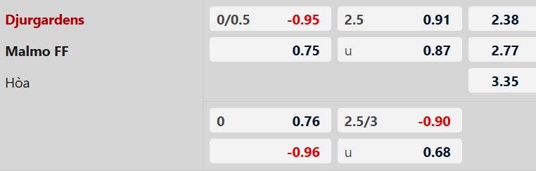 Thông tin tỷ lệ cược Djurgardens vs Malmo: