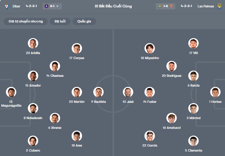 Đội hình dự kiến Eibar vs Las Palmas: