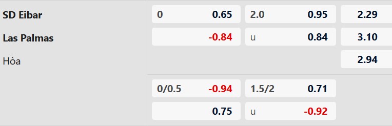 Thông tin tỷ lệ cược Eibar vs Las Palmas: