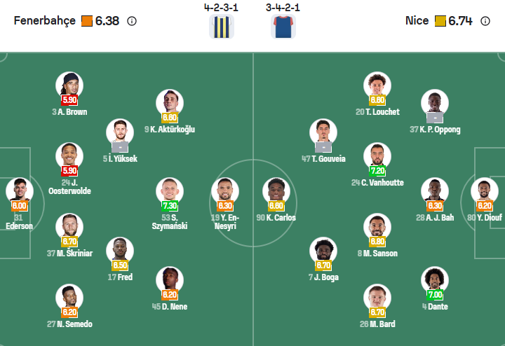 Đội hình dự kiến Fenerbahce vs Nice: