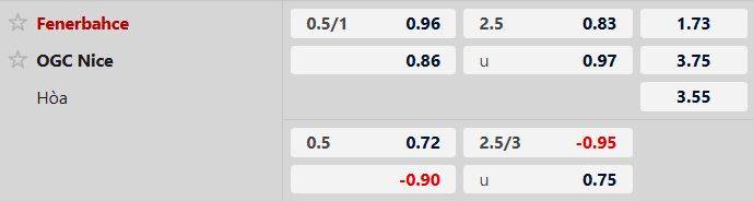 Thông tin tỷ lệ kèo bóng đá Fenerbahce vs Nice: