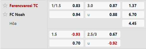 Thông tin tỷ lệ bóng đá Ferencvaros vs FC Noah: