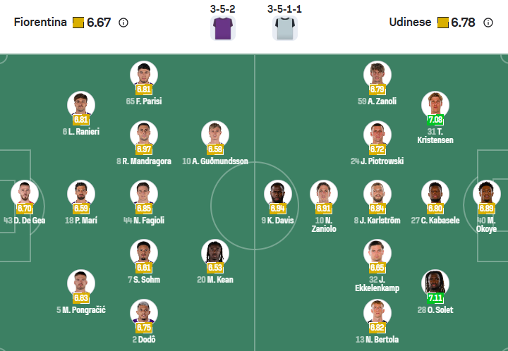 Hai đội cùng ghi bàn: 3 cuộc đối đầu gần nhất, 6/9 trận gần đây của Fiorentina đều khép lại với ít nhất 1 bàn thắng cho mỗi đội. Hơn nữa, Fiorentina luôn ghi bàn ở 13/15 trận sân nhà gần đây và Udinese ghi tối thiểu 1 bàn ở 6/7 chuyến làm khách vừa qua tại Serie A.