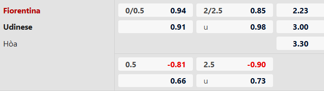 Soi kèo tài xỉu Fiorentina vs Udinese: