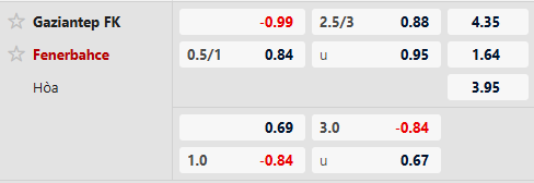 Thông tin tỷ lệ kèo Gaziantep vs Fenerbahce: