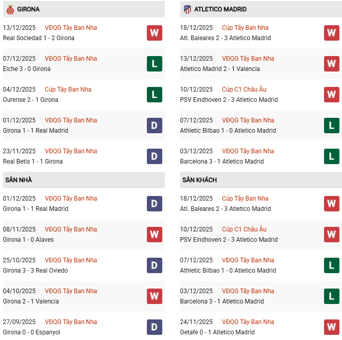- Trên sân nhà, Girona thắng 1, thua 2 trước Atletico Madrid.