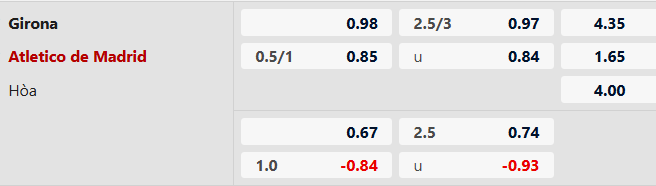 Soi kèo châu Á Girona vs Atletico Madrid:
