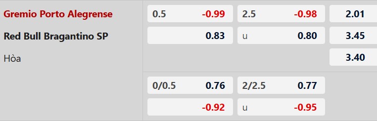 Soi kèo châu Á Gremio vs Bragantino: