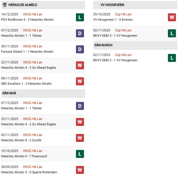 Thành tích đối đầu Heracles vs VV Hoogeveen:
