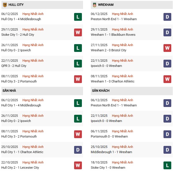 Trên sân khách, Wrexham cũng duy trì được sự cân bằng: thắng 3, hòa 5, thua 2 trong 10 trận vừa qua. Tuy vậy, họ thường gặp trở ngại trước các đội pressing mạnh và giàu thể lực như Hull. Việc phải đá tại sân MKM – nơi Hull thi đấu rất giàu cảm hứng – chắc chắn khiến Wrexham phải đặt mục tiêu ưu tiên phòng ngự.