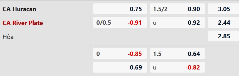 Soi kèo châu Á Huracan vs River Plate: