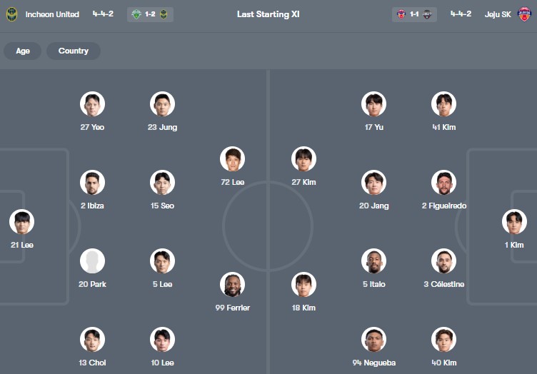 Đội hình dự kiến Incheon United vs Jeju SK: