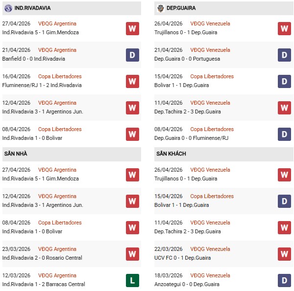 Thống kê phong độ Ind. Rivadavia vs La Guaira: