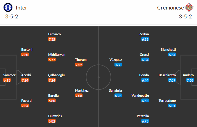 Inter Milan vẫn duy trì được hiệu suất làm bàn tốt ở Serie A với 13 pha lập công sau 5 trận. Tuy nhiên, có đến 5 trong số này được ghi ở trận gặp Torino. Điểm sáng của thầy trò Chivu đó là việc họ chỉ để lọt lưới đúng 1 lần ở 4 lần ra sân gần nhất. Tương tự, Cremonese mùa này cũng mới để lọt lưới đúng 4 bàn ở Serie A và đang nằm trong nhóm có hàng thủ tốt nhất giải. Vậy nên mức kèo tài xỉu lên đến 3 1/4 sẽ phù hợp hơn dành cho kèo Xỉu sau 90 phút.