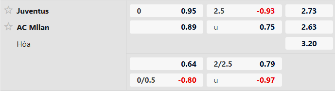 Tỷ lệ kèo đồng banh xuất hiện trận đấu này. Thống kê đang ủng hộ Milan: họ đang có chuỗi 5 chiến thắng liên tiếp, trong khi Juventus chỉ biết đến hòa ở 4 trận gần nhất. Juventus từng gây ấn tượng khi đánh bại Inter trong màn rượt đuổi tỷ số tới 7 bàn, nhưng sau chuyến hành quân hao tổn thể lực ở châu Âu giữa tuần, họ khó lòng duy trì sự bùng nổ. Với sự ổn định hiện tại, Milan hoàn toàn có khả năng rời sân với thêm một chiến thắng nữa.