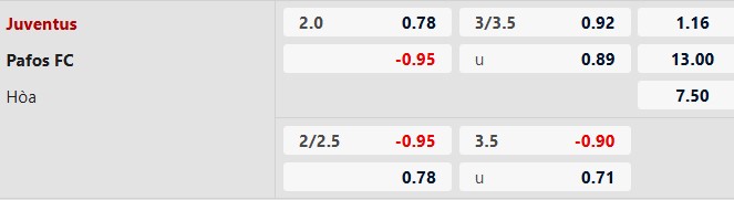 Thông tin tỷ lệ kèo bóng đá Juventus vs Pafos: