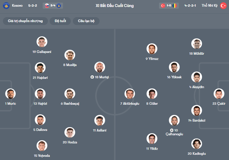 Đội hình dự kiến Kosovo vs Thổ Nhĩ Kỳ: