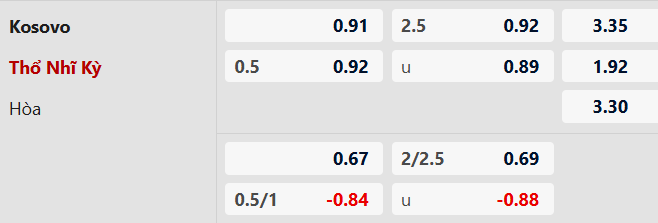 Soi kèo châu Á Kosovo vs Thổ Nhĩ Kỳ: