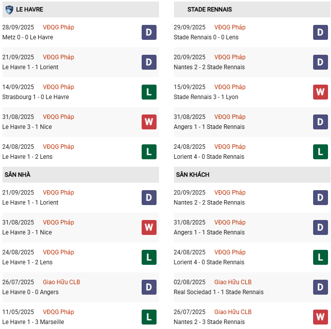 Tuy nhiên hãy lưu ý rằng đội chủ nhà gần nhất họ đánh bại không ai khác ngoài Le Havre và xét cả mùa 2024/25, Rennes cũng thắng được có 4 trận sân khách mà thôi (thua tới 9) - thống kê càng thể hiện mức độ "kỵ giơ" của đôi bên.