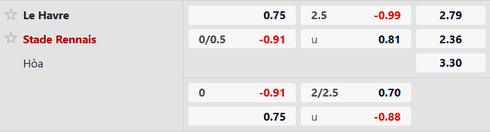 Soi kèo tài xỉu Le Havre vs Rennes: