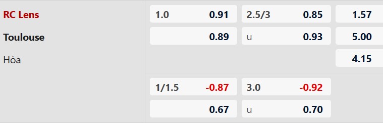 Mốc 2 3/4 khá sáng cho cửa Tài khi Lens thường chơi rất bùng nổ trên sân nhà. 4/5 trận sân nhà gần nhất của họ đều có từ 3 bàn trở lên, trong khi Toulouse vừa thủng lưới 7 bàn ở 2 vòng gần nhất. Thế trận cởi mở với nhiều cơ hội ghi bàn là kịch bản dễ xảy ra.