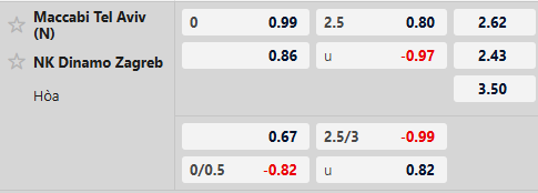 Thông tin tỷ lệ kèo Maccabi Tel Aviv vs Dinamo Zagreb: