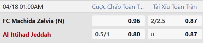 Thông tin tỷ lệ kèo Machida Zelvia vs Al Ittihad: