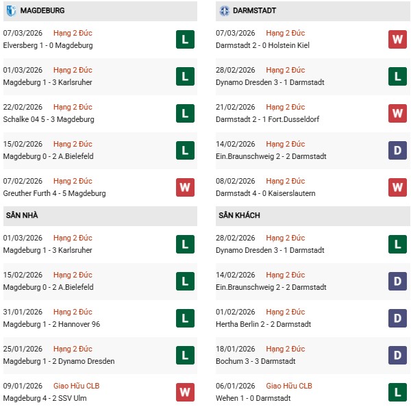 - Trên sân nhà, Magdeburg thắng 1, thua 3 trước Darmstadt.
