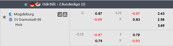 Thông tin tỷ lệ cược Magdeburg vs Darmstadt: