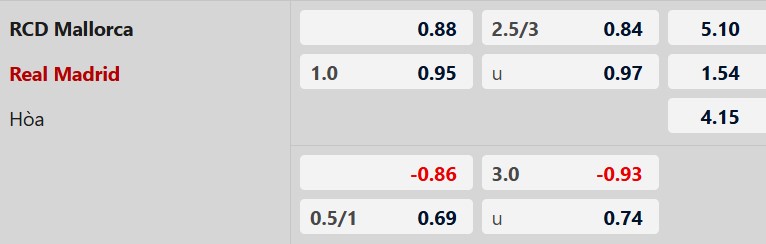 Thông tin tỷ lệ kèo bóng đá Mallorca vs Real Madrid:
